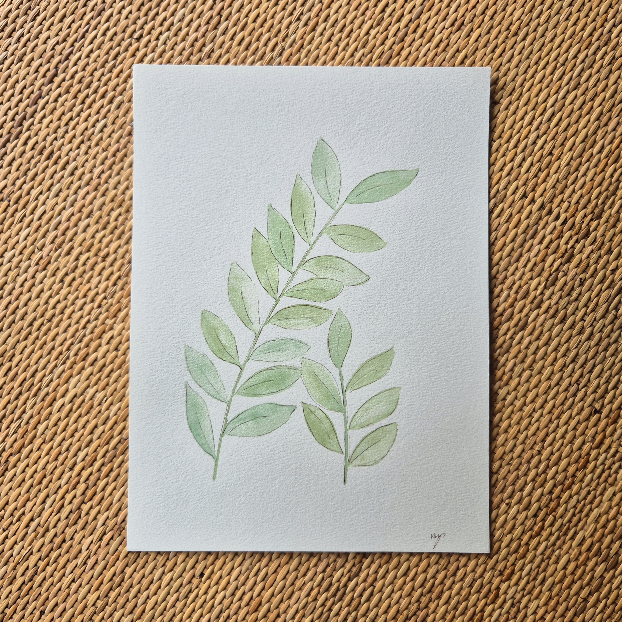 'Pastel Leaves in Green' Original Watercolour Artwork